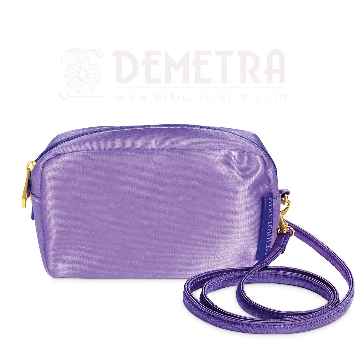 La pochette in tessuto viola impreziosisce il kit, rendendolo perfetto come idea regalo per lei.