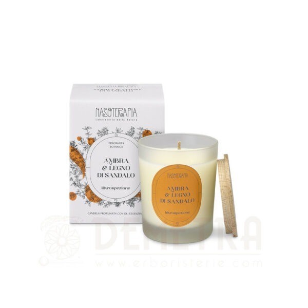 Candela di cera vegetale profumata Ambra e Sandalo 180 grammi – Nasoterapia