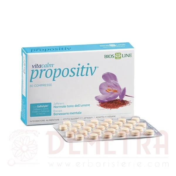 VitaCalm Propositiv contiene Safralyin®, polvere di stimmi di Zafferano, utile per favorire il normale tono dell’umore ed estratto di Bacopa, una pianta che cresce in India e nelle zone tropicali, utile per il benessere mentale.