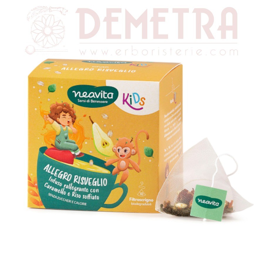 Allegro Risveglio Infuso rallegrante con Caramello e Riso soffiato in 10 filtroscrigno – Neavita Kids