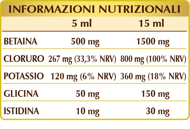 Inoltre, la betaina contribuisce al normale metabolismo dell’omocisteina* mentre il potassio contribuisce alla normale funzione muscolare, promuove il funzionamento del sistema nervoso e aiuta a mantenere la normale pressione sanguigna.