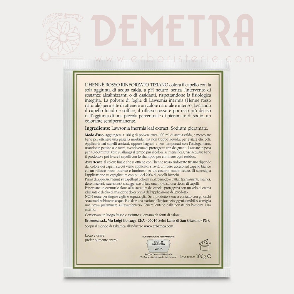 Hennè Rosso Rinforzato Tiziano in polvere 100gr – Erbamea