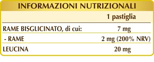 Integratore alimentare a base di rame bisglicinato, fonte di rame in forma organica chelata ad elevata biodisponibilità, arricchito con l’aminoacido leucina.